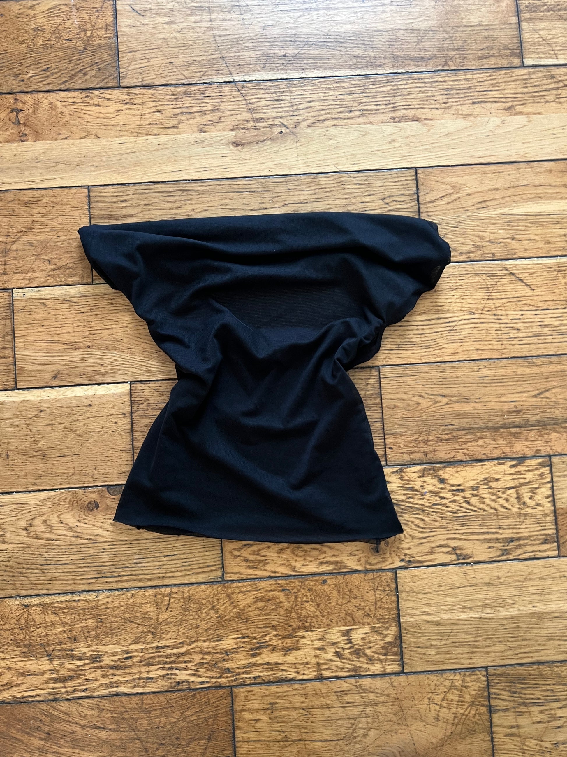 The Bandera top is a sheer mesh top designed to be worn multiple ways— shoulder covered, halter-style, or with a wrapped neckline. Lightweight and fluid, it drapes effortlessly on the body, adding subtle dimension through delicate folds and texture.